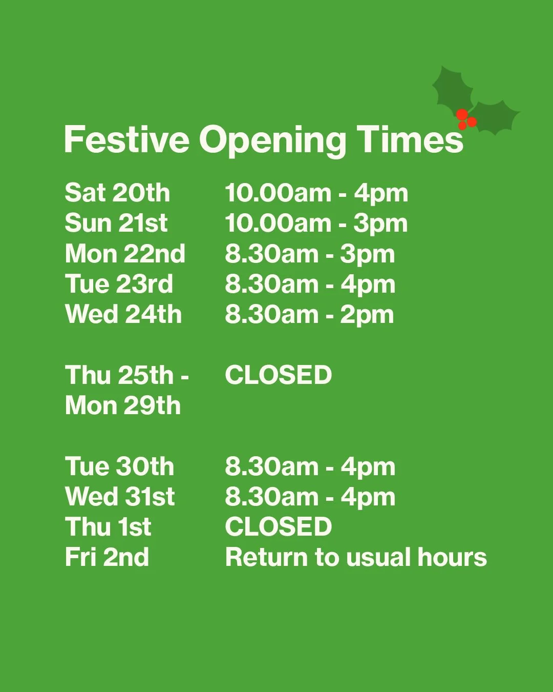 Usual Opening Times